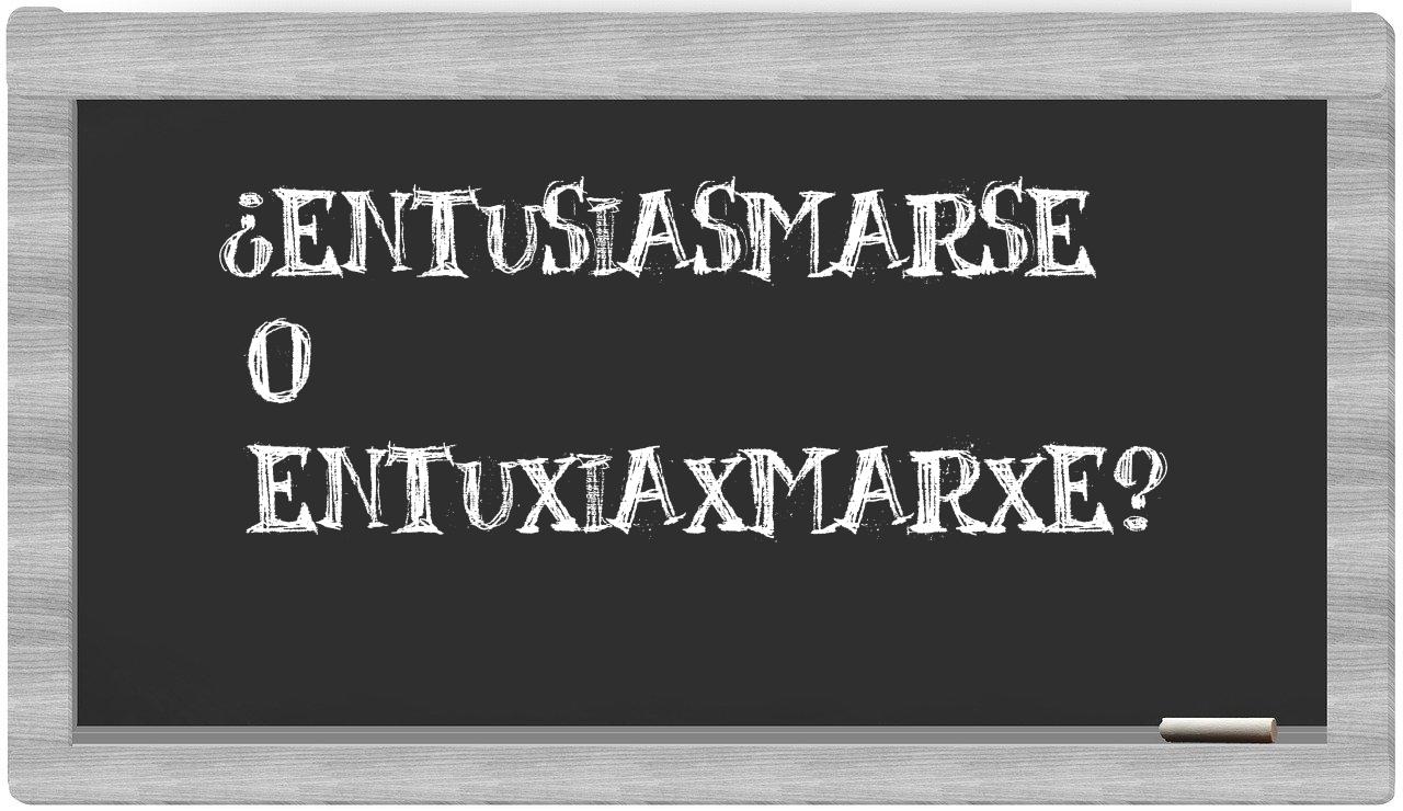 En la particular situación que involucra a entusiasmarse y entuxiaxmarxe, no deberías experimentar ninguna incertidumbre, puesto que únicamente entusiasmarse se encuentra debidamente registrada en la lengua adecuada. Por otro lado, entuxiaxmarxe no figura en el Diccionario de la Real Academia Española.