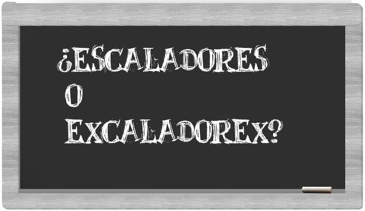 En la situación específica en la que se encuentren las voces escaladores y excaladorex, no deberías titubear, pues únicamente la forma escaladores es la que presenta una escritura adecuada. Por otro lado, excaladorex carece de presencia en el repertorio del Diccionario de la Real Academia Española.