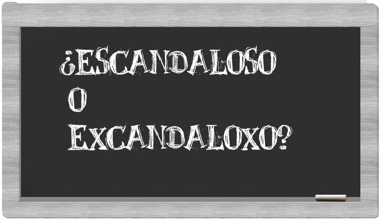 En lo que respecta a la distinción entre escandaloso y excandaloxo, no deberías titubear, porque solo escandaloso es la forma adecuada; excandaloxo, por otro lado, carece de reconocimiento en el Diccionario de la Real Academia Española.
