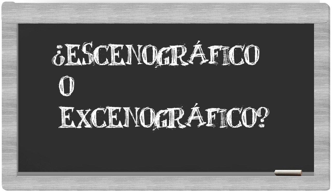 Cuando te encuentres ante la elección de usar escenográfico o excenográfico, es fundamental que no vaciles, puesto que únicamente escenográfico es la opción adecuada. Cabe resaltar que excenográfico no figura en el Diccionario de la Real Academia Española.