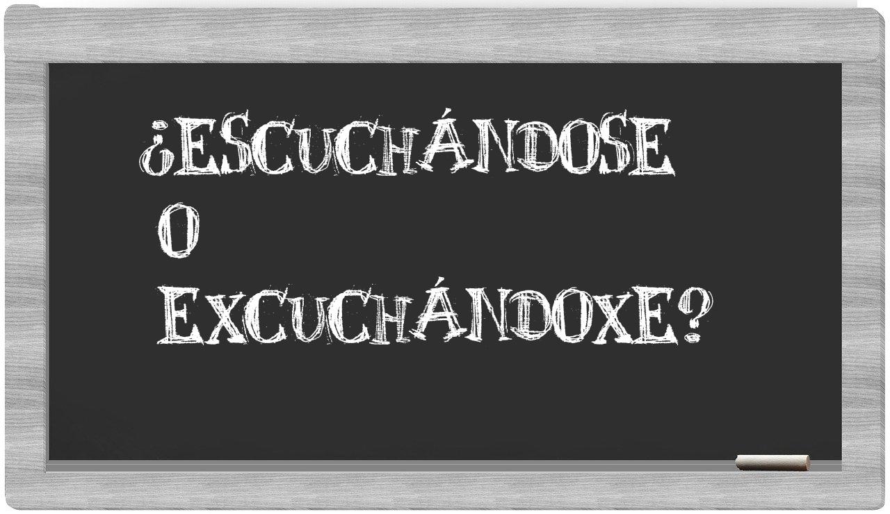 Cuando se trata de distinguir entre escuchándose y excuchándoxe, no deberías titubear en tu elección, puesto que únicamente escuchándose es la forma correcta y aceptada; de hecho, excuchándoxe no se encuentra en el repertorio del Diccionario de la Real Academia Española.