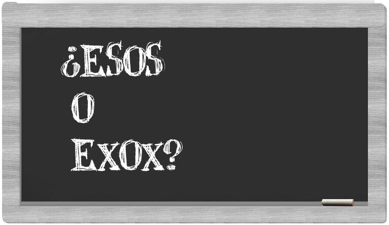 Cuando se trata del dilema entre esos y exox, la elección es clara y sin ambigüedades, ya que únicamente esos figura de manera adecuada en el léxico oficial que respalda la Real Academia Española, mientras que exox se halla ausente en sus páginas.