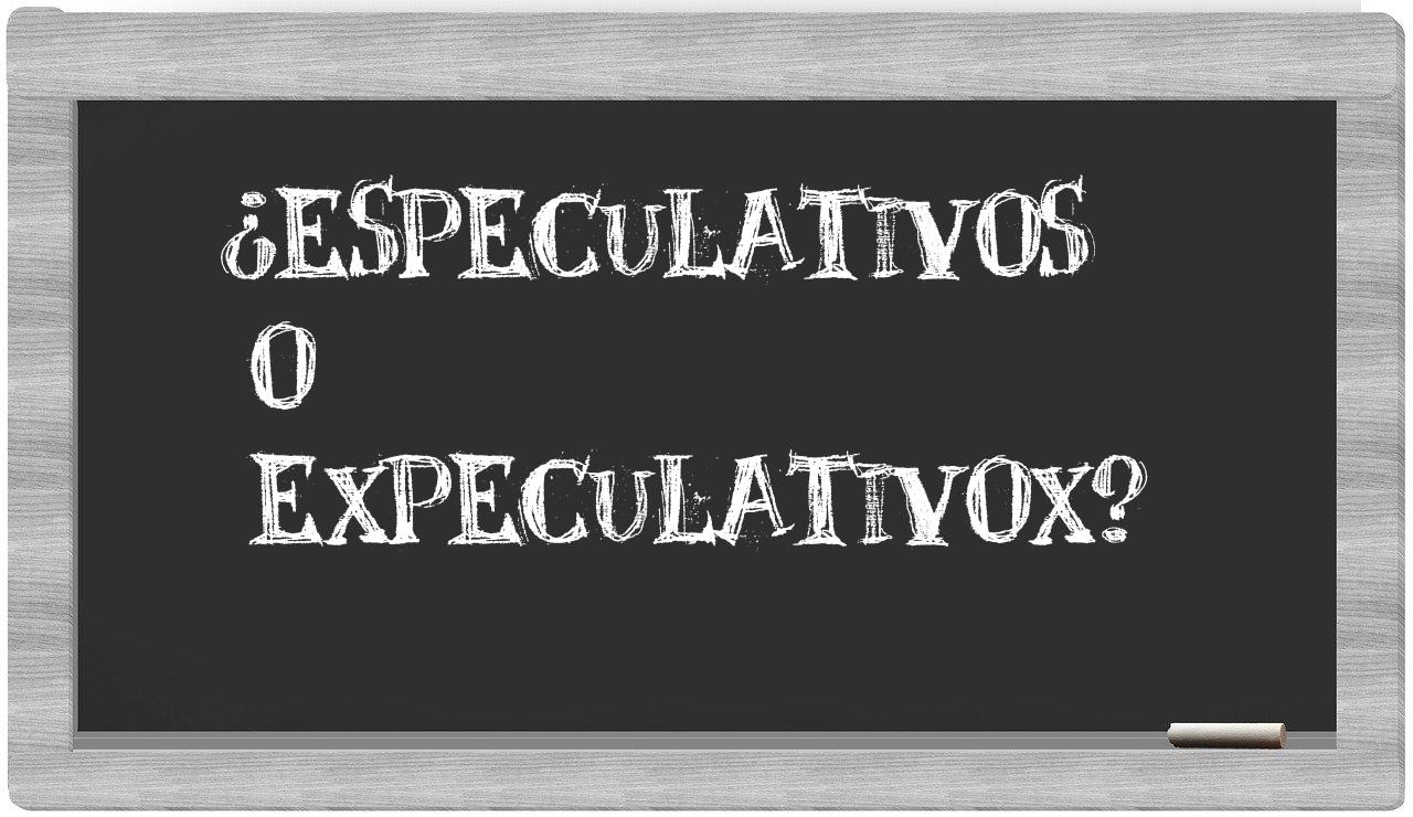 Cuando se trata de discernir entre especulativos y expeculativox, la elección debe ser evidente, puesto que únicamente especulativos se encuentra debidamente registrada en el Diccionario de la Real Academia Española, mientras que expeculativox no figura en su catálogo oficial.