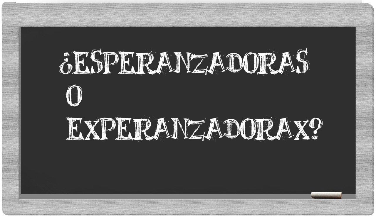 En lo que respecta específicamente a las expresiones esperanzadoras y experanzadorax, no hay lugar para la incertidumbre, pues únicamente esperanzadoras se encuentra correctamente redactada, mientras que experanzadorax no figura en el repertorio del Diccionario de la Real Academia de la Lengua.