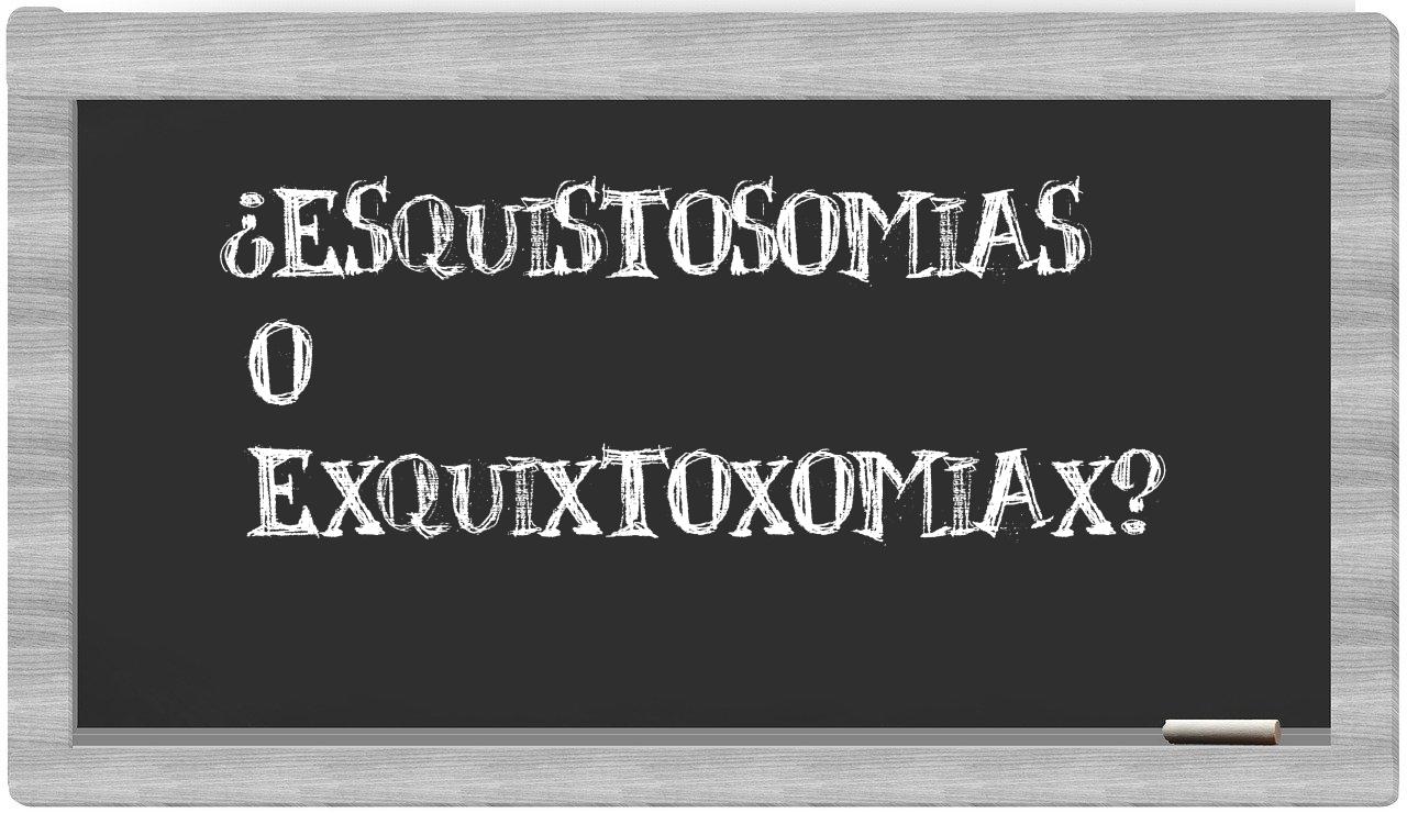 En la situación particular que involucra los términos esquistosomias y exquixtoxomiax, nunca deberías titubear, pues únicamente esquistosomias es el que está redigido adecuadamente. Por otro lado, exquixtoxomiax no se encuentra registrado en el Diccionario de la Real Academia Española.