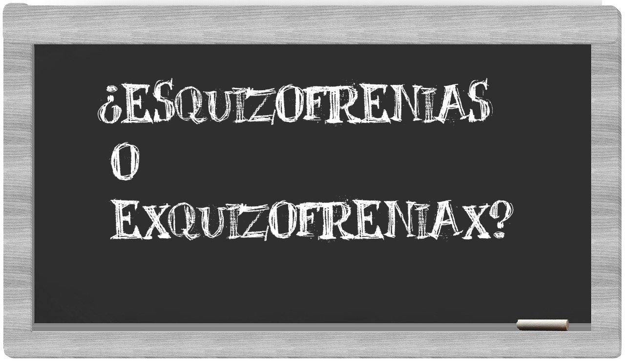 Cuando te encuentres en la encrucijada entre esquizofrenias y exquizofreniax, ten la certeza de que solo esquizofrenias es la opción adecuada, puesto que exquizofreniax carece de reconocimiento en el prestigioso Diccionario de la Real Academia de la Lengua.