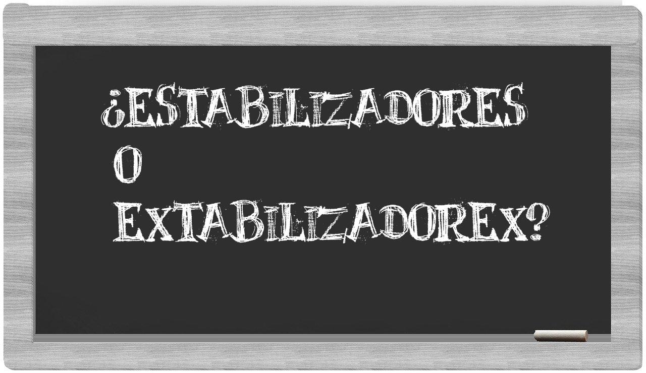 En la situación específica en la que se encuentren las voces estabilizadores y extabilizadorex, no deberías titubear, pues únicamente la forma estabilizadores es la que presenta una escritura adecuada. Por otro lado, extabilizadorex carece de presencia en el repertorio del Diccionario de la Real Academia Española.