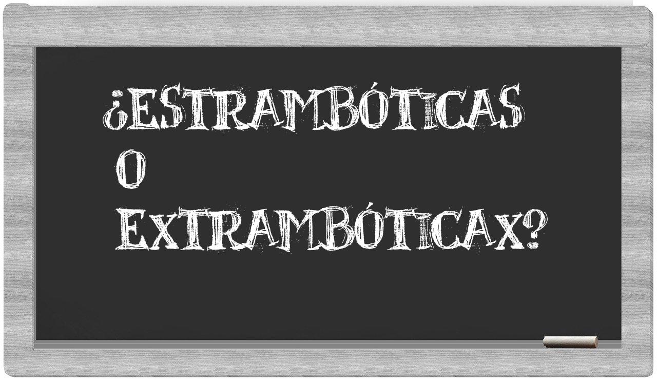 En la situación específica que enfrenta estrambóticas y extrambóticax, la elección es clara y no debe generar confusión, puesto que únicamente estrambóticas se encuentra correctamente formulada; por el contrario, extrambóticax no figura en el Diccionario de la Real Academia Española.