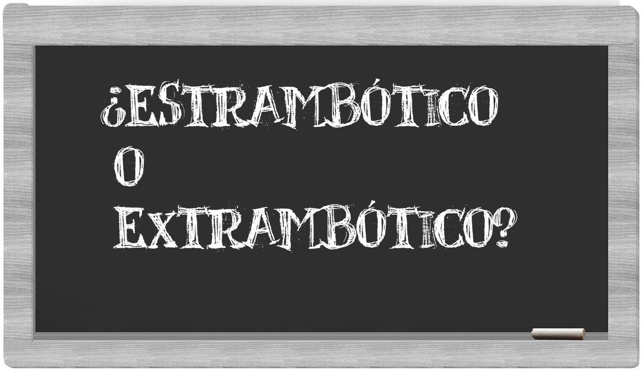 La mezcla entre estrambótico y extrambótico surge en gran parte por su semejanza fonética. En prácticamente todos los acentos del idioma español, ambos términos se pronuncian de forma casi idéntica, lo que puede inducir a la creencia de que su escritura es equivalente. No obstante, la correcta redacción de cada uno se fundamenta en sus raíces etimológicas y en las normativas particulares que rigen la ortografía en español.