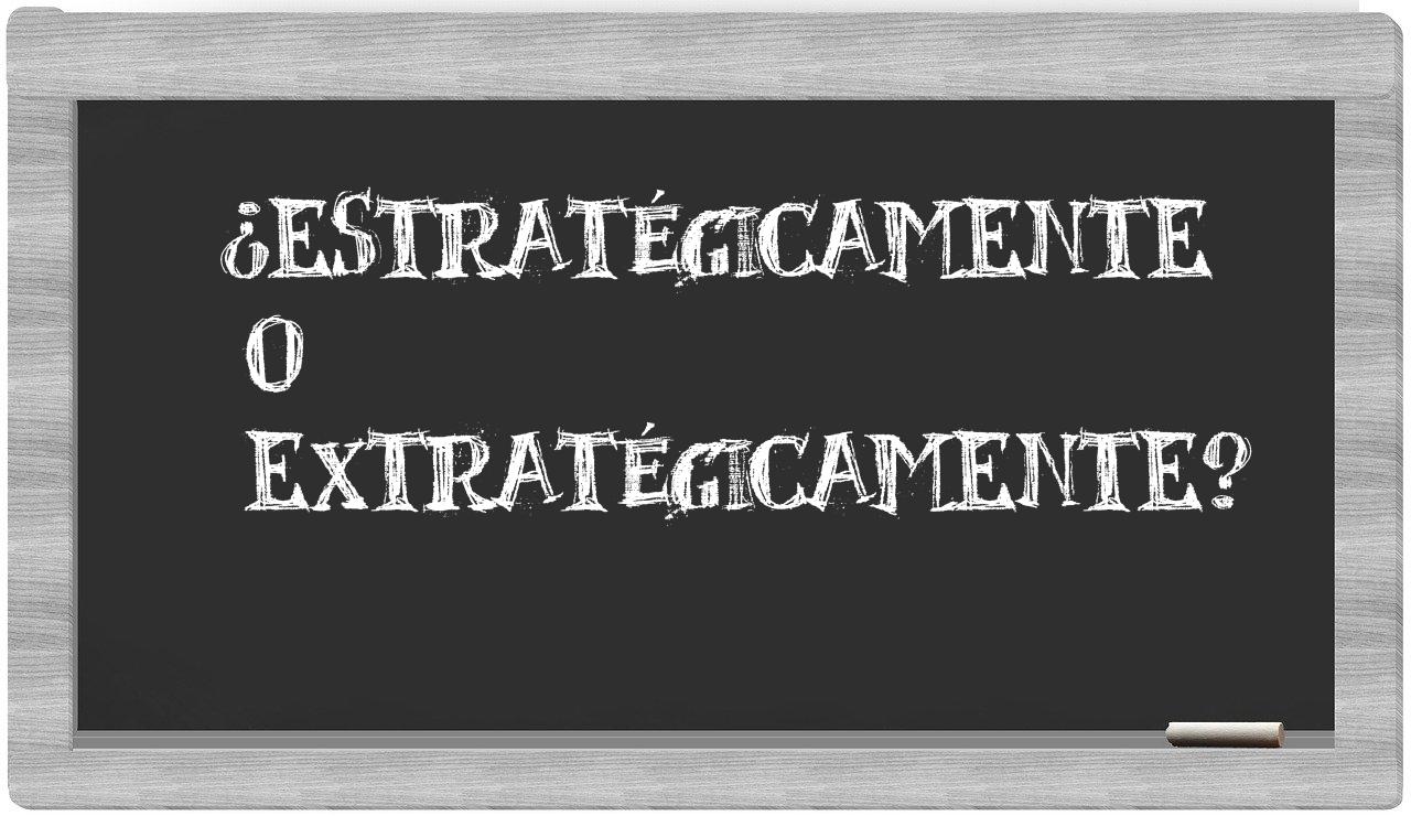 Cuando se presenta la elección entre las expresiones estratégicamente y extratégicamente, es fundamental que no titubees, puesto que únicamente estratégicamente se registra de manera adecuada. Por otro lado, extratégicamente carece de reconocimiento en el Diccionario de la Real Academia de la Lengua.