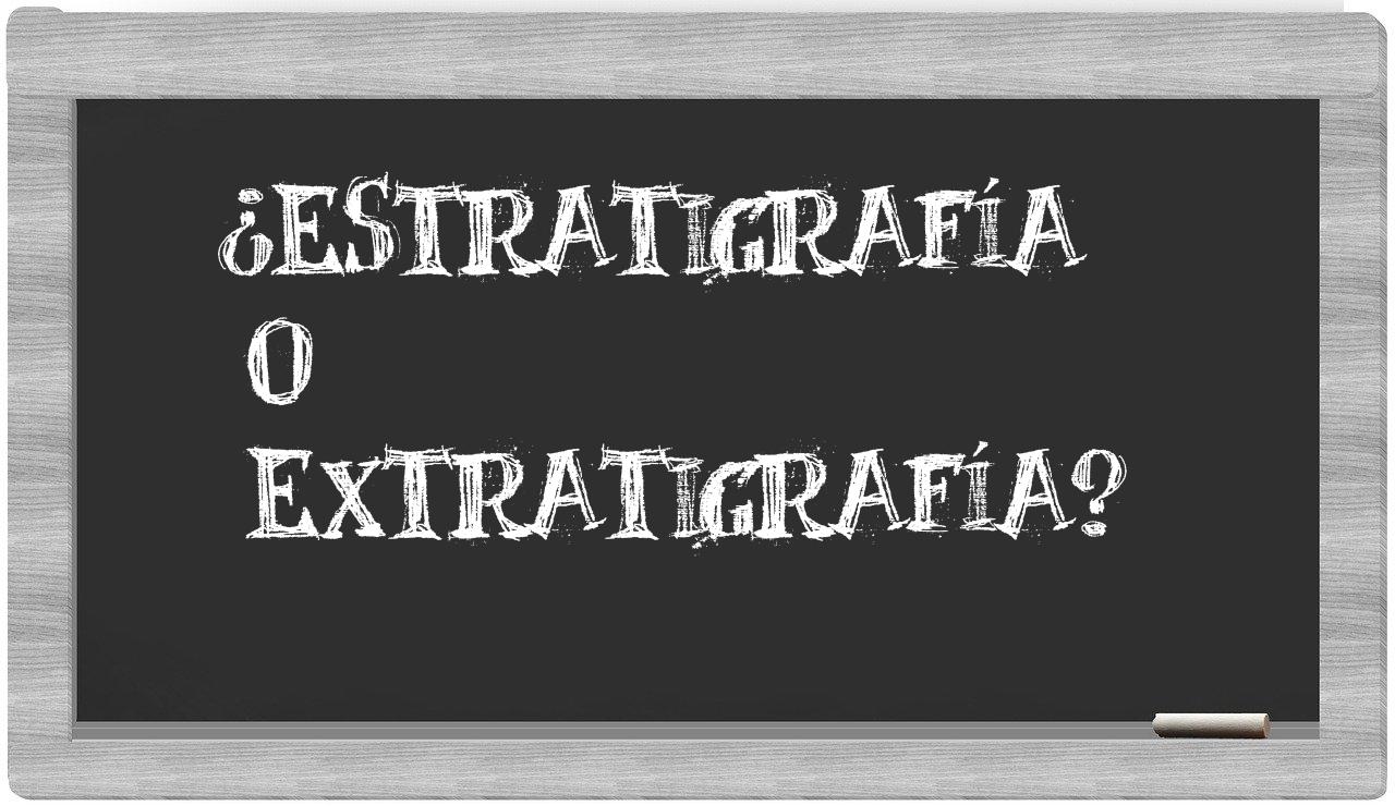 Cuando se trata de la distinción entre estratigrafía y extratigrafía, no hay lugar para la indecisión, puesto que únicamente estratigrafía se encuentra adecuadamente plasmada en el lenguaje. Por otro lado, extratigrafía no figura en el Diccionario de la Real Academia Española como una opción válida.