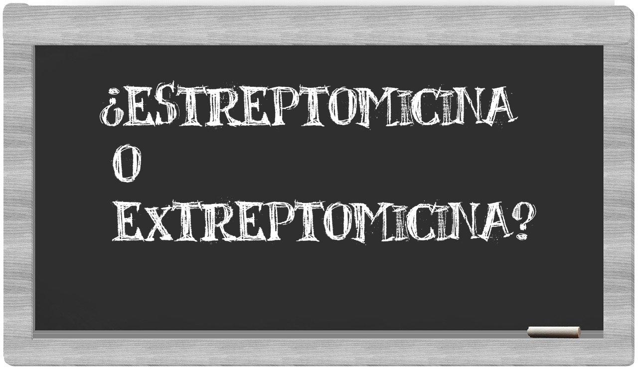 Cuando se trata de las palabras estreptomicina y extreptomicina, nunca deberías tener vacilaciones, dado que únicamente estreptomicina está correctamente redactada. Cabe mencionar que extreptomicina no se encuentra en el diccionario oficial de la Real Academia Española.