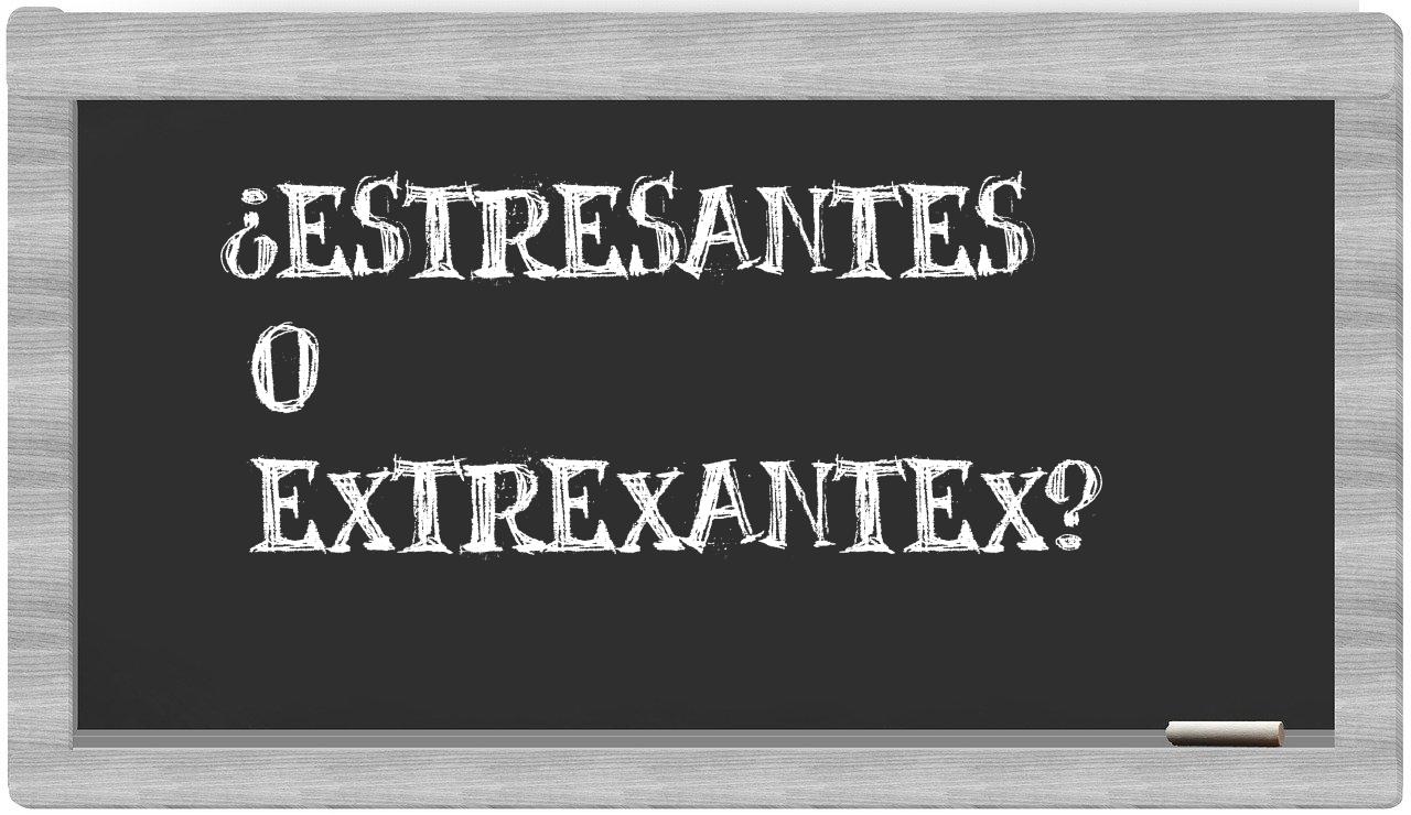 En la situación específica que involucra las palabras estresantes y extrexantex, es importante que no vaciles, puesto que únicamente estresantes se encuentra registrada de manera apropiada. Por otro lado, extrexantex no figura en el Diccionario de la Real Academia Española.