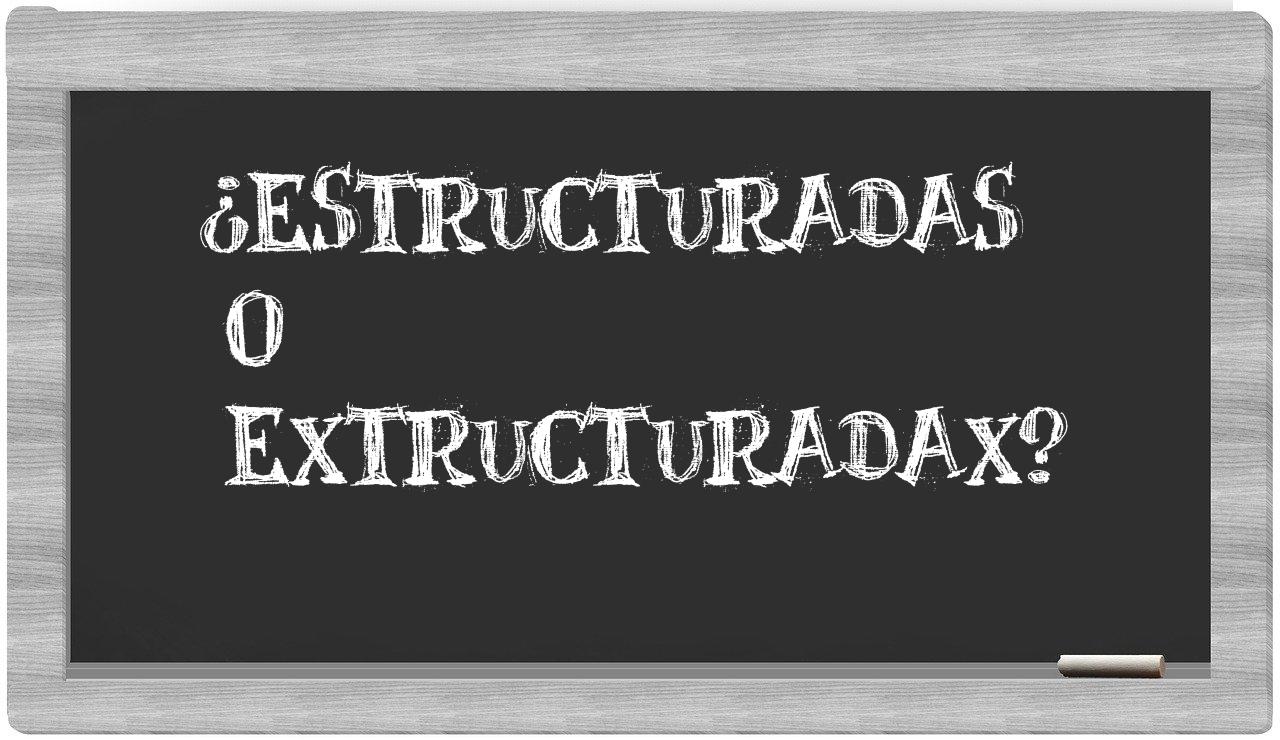 Cuando se trata de las palabras estructuradas y extructuradax, es fundamental no titubear, puesto que únicamente estructuradas se encuentra debidamente registrada en el Diccionario de la Real Academia Española, mientras que extructuradax carece de reconocimiento oficial.