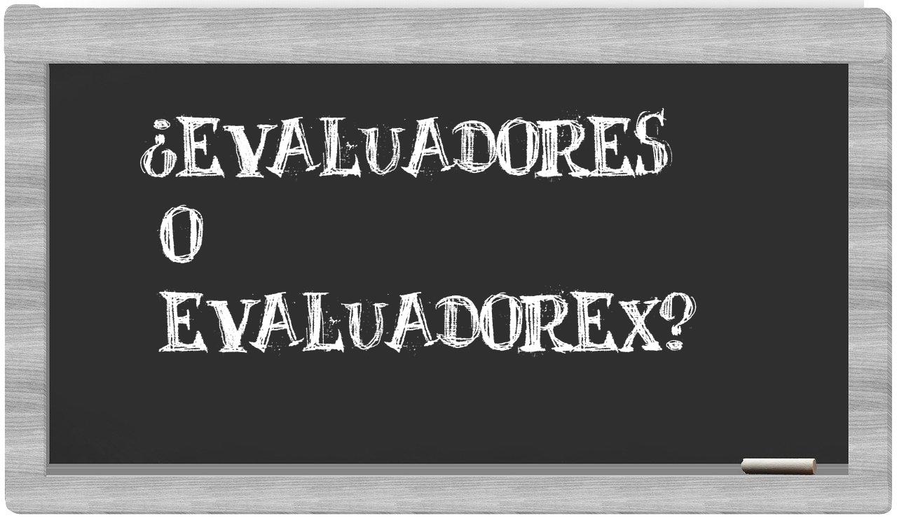 En la situación particular que involucra los términos evaluadores y evaluadorex, no deberías titubear en absoluto, puesto que únicamente evaluadores es la forma adecuada, mientras que evaluadorex carece de presencia en el Diccionario de la Real Academia Española.