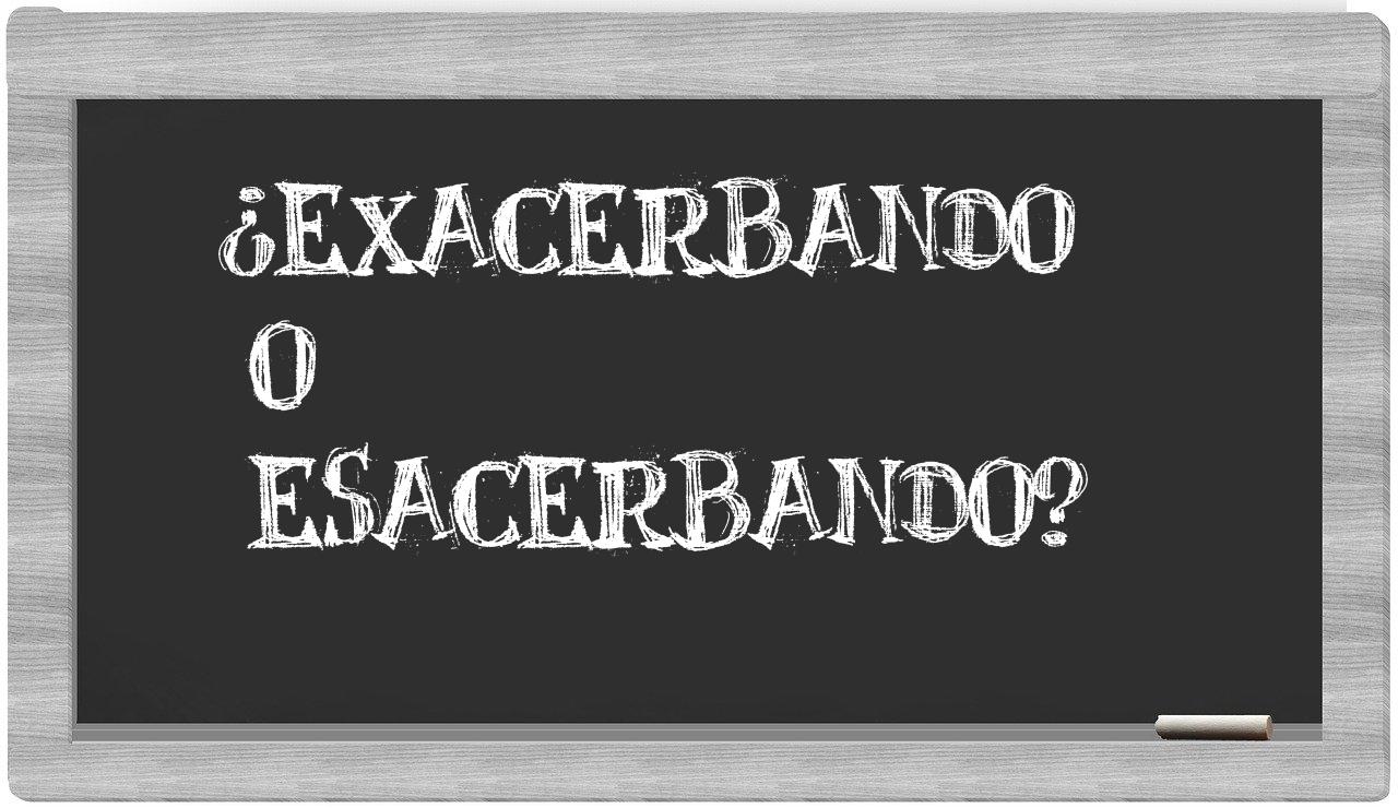 Cuando se trata de elegir entre exacerbando y esacerbando, la decisión es evidente, puesto que solo exacerbando refleja la forma adecuadamente registrada, mientras que esacerbando no se encuentra en el repertorio del Diccionario de la Real Academia Española.