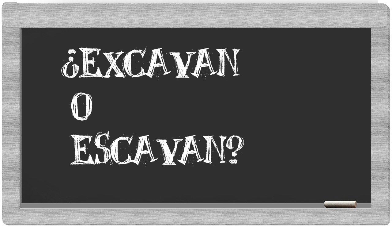 En la situación particular entre los términos excavan y escavan, nunca deberías tener incertidumbres, puesto que únicamente excavan se encuentra registrado de manera adecuada. Por otro lado, escavan no se halla en el compendio de la Real Academia de la Lengua.