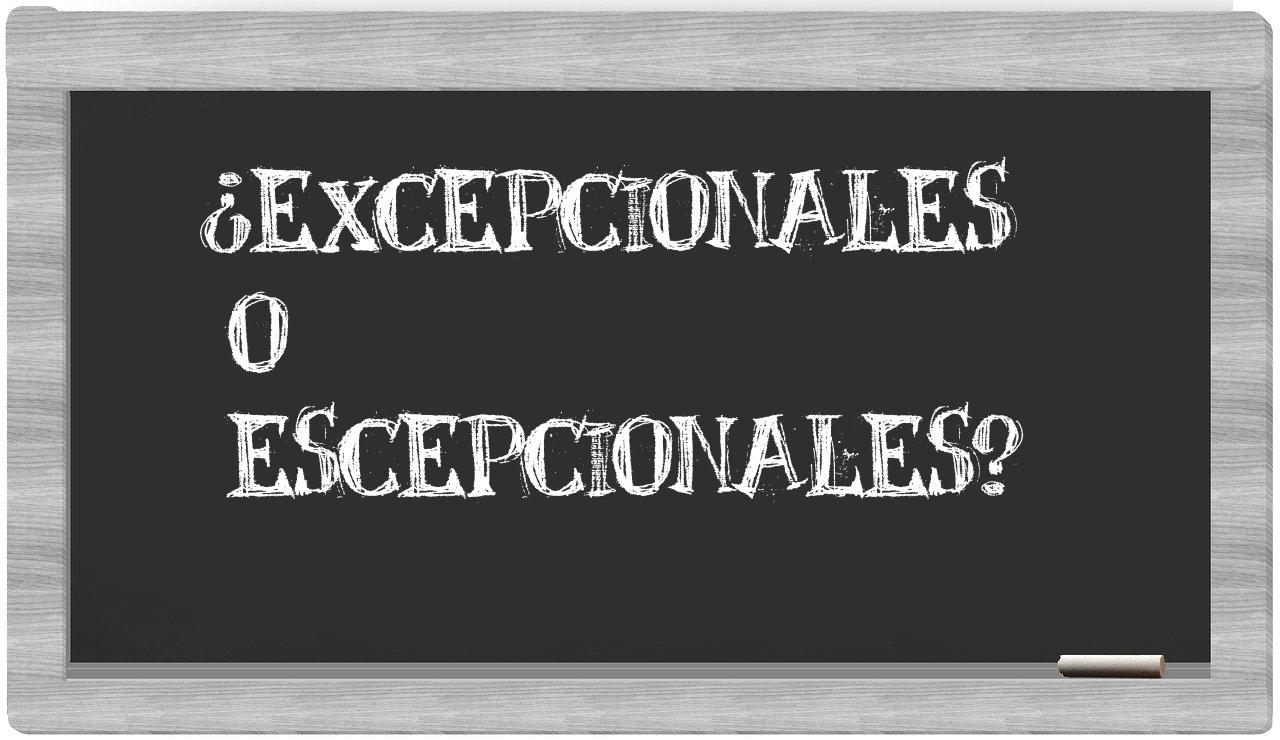 En la particular situación que involucra a excepcionales y escepcionales, no deberías vacilar en tu elección, puesto que únicamente excepcionales está correctamente formulada. Por su parte, escepcionales no está registrada en el prestigioso Diccionario de la Real Academia Española.