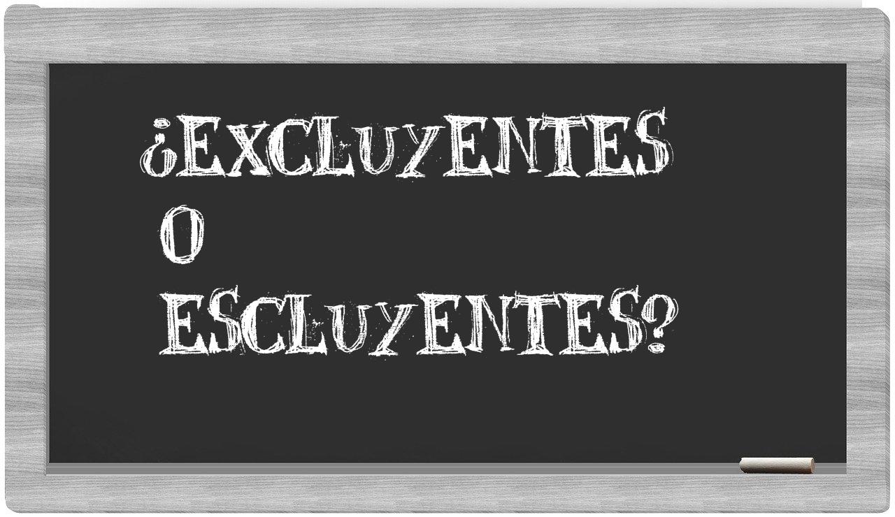 En la situación particular en la que se encuentran los términos excluyentes y escluyentes, no debes titubear, dado que únicamente excluyentes se encuentra correctamente redactada; escluyentes, por el contrario, no figura en el Diccionario de la Real Academia Española.