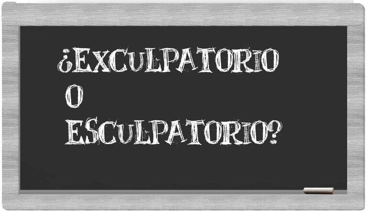 Cuando se presenta la disyuntiva entre exculpatorio y esculpatorio, es fundamental que no vaciles, puesto que solo exculpatorio se encuentra debidamente consignada como adecuada. En cambio, esculpatorio no se halla en el venerado Diccionario de la Real Academia Española.