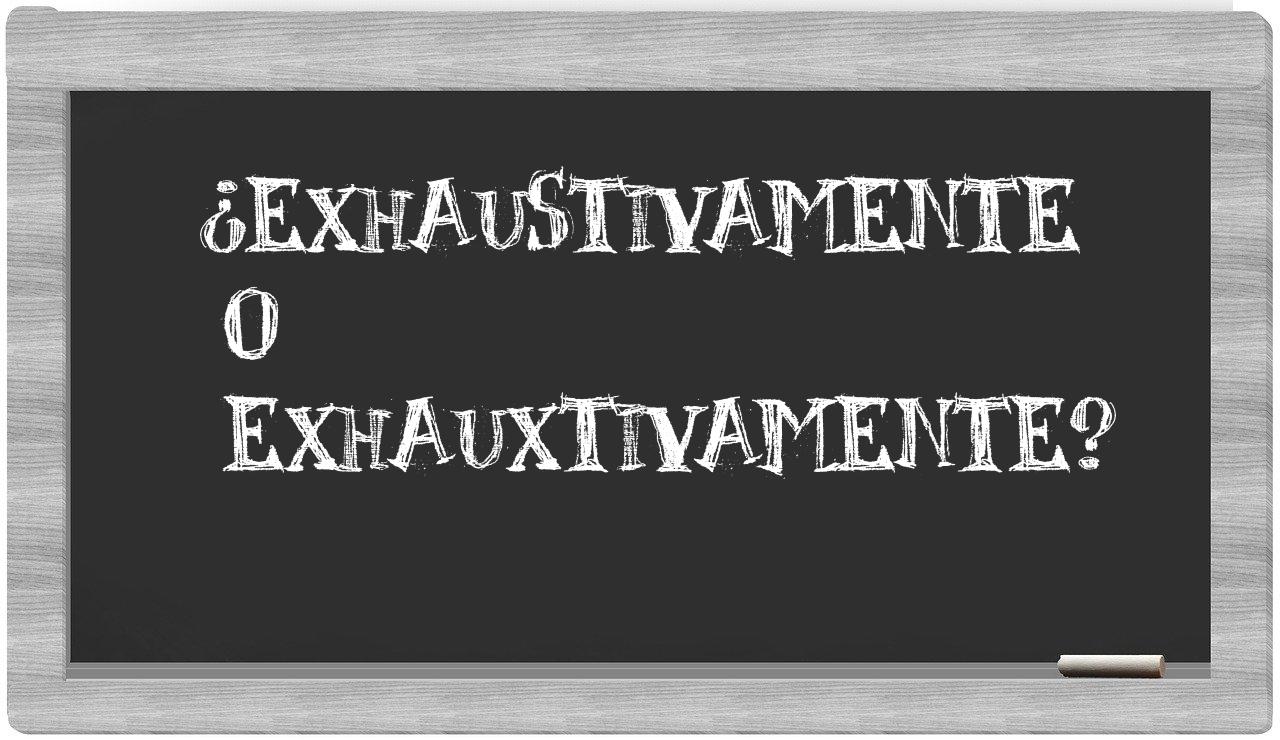 Cuando se trata de elegir entre exhaustivamente y exhauxtivamente, no deberías titubear en absoluto, dado que solo exhaustivamente se encuentra registrada correctamente, mientras que exhauxtivamente no tiene cabida en el Diccionario de la Real Academia Española.