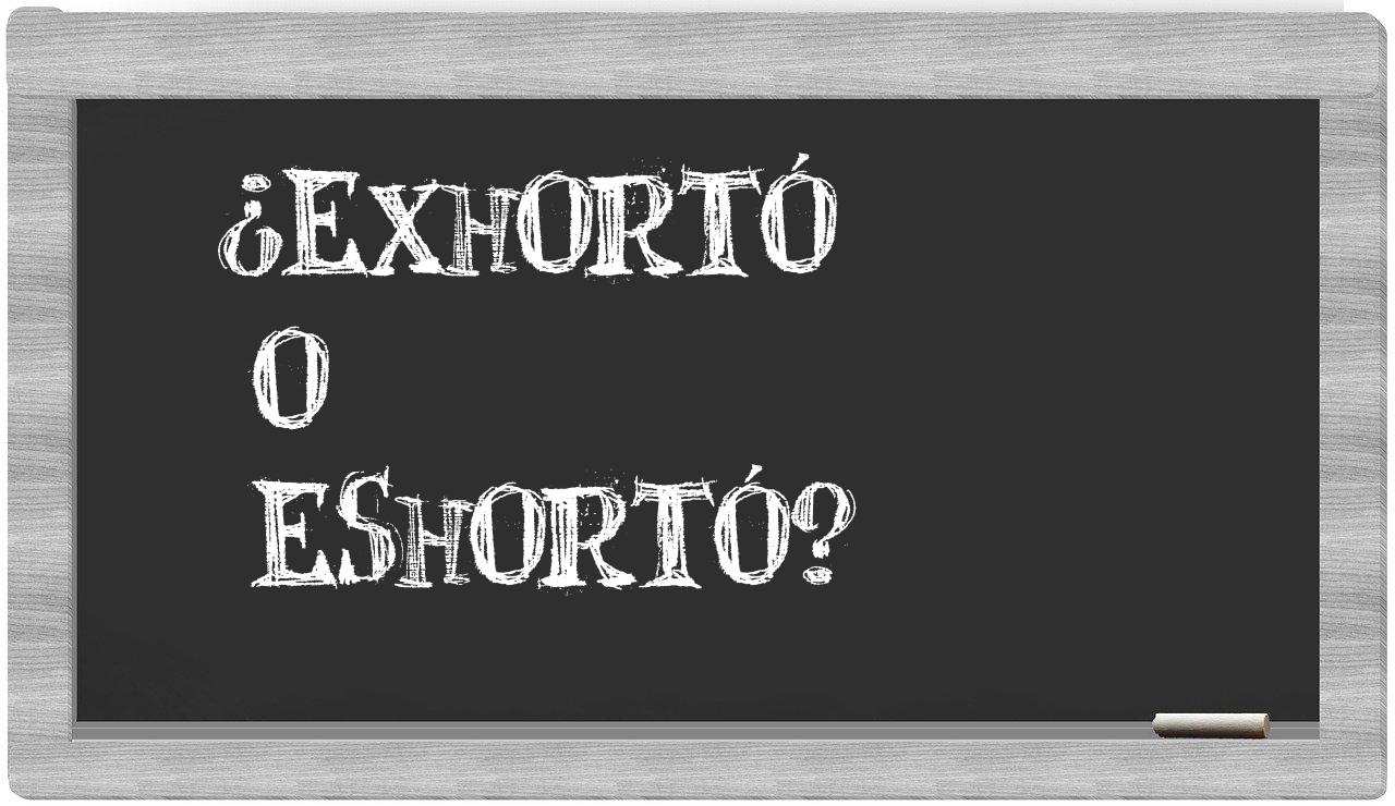 Cuando se presenta la disyuntiva entre exhortó y eshortó, no hay lugar para la incertidumbre, porque únicamente exhortó se encuentra correctamente redactada. Por otro lado, eshortó es una palabra que no se halla registrada en el Diccionario de la Real Academia Española.