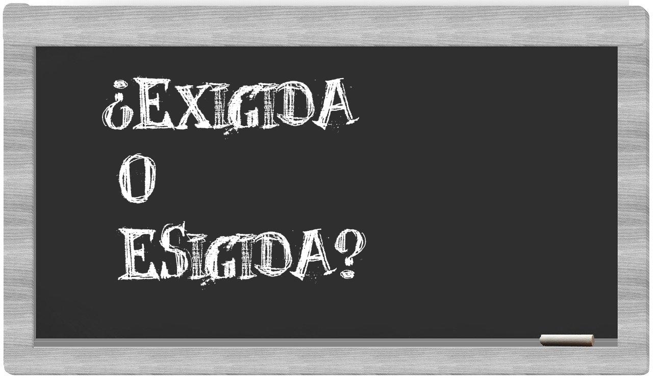 En la singular situación que involucra los términos exigida y esigida, nunca deberías tener incertidumbre, porque únicamente exigida se encuentra correctamente redactada. Por otro lado, esigida no está registrada en el Diccionario de la Real Academia Española.