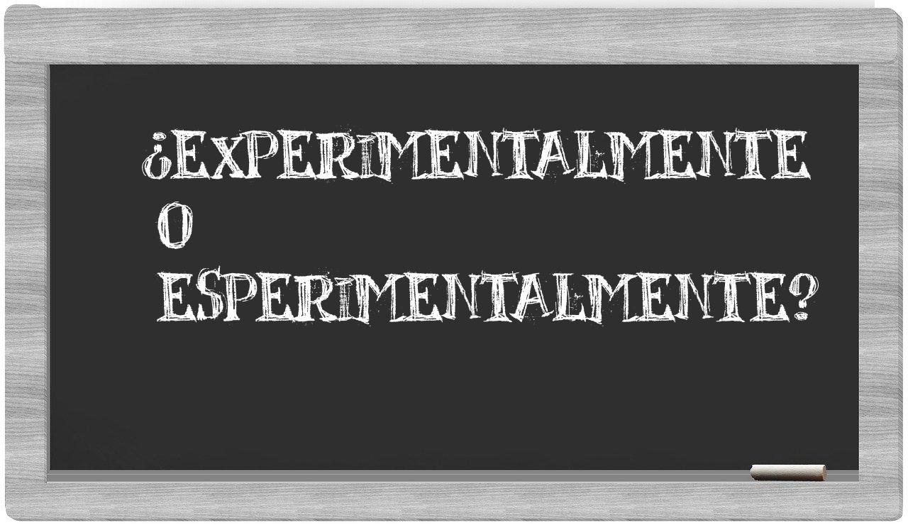 En la situación particular que involucra los términos experimentalmente y esperimentalmente, nunca deberías tener inquietudes, puesto que únicamente experimentalmente se encuentra correctamente formulada. Por su parte, esperimentalmente no figura en el léxico del Diccionario de la Real Academia Española.