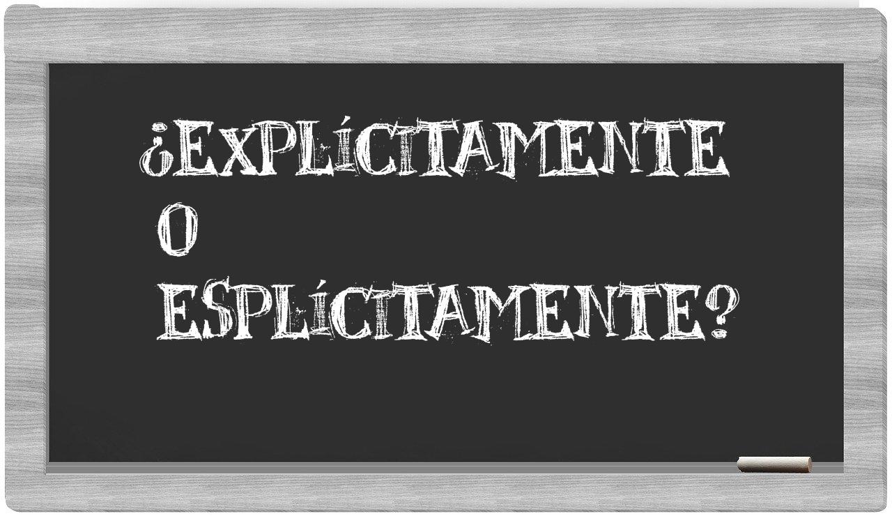 Cuando se trata de discernir entre explícitamente y esplícitamente, no hay lugar para la confusión, pues únicamente explícitamente se presenta como la opción correcta. Por su parte, esplícitamente carece de reconocimiento en el Diccionario de la Real Academia Española.