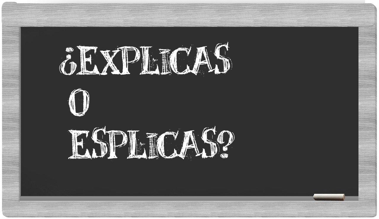 En la particular circunstancia de optar entre los términos explicas y esplicas, no deberías titubear en absoluto, dado que únicamente explicas es la forma adecuada. Por otra parte, esplicas carece de reconocimiento en el Diccionario de la Real Academia Española.