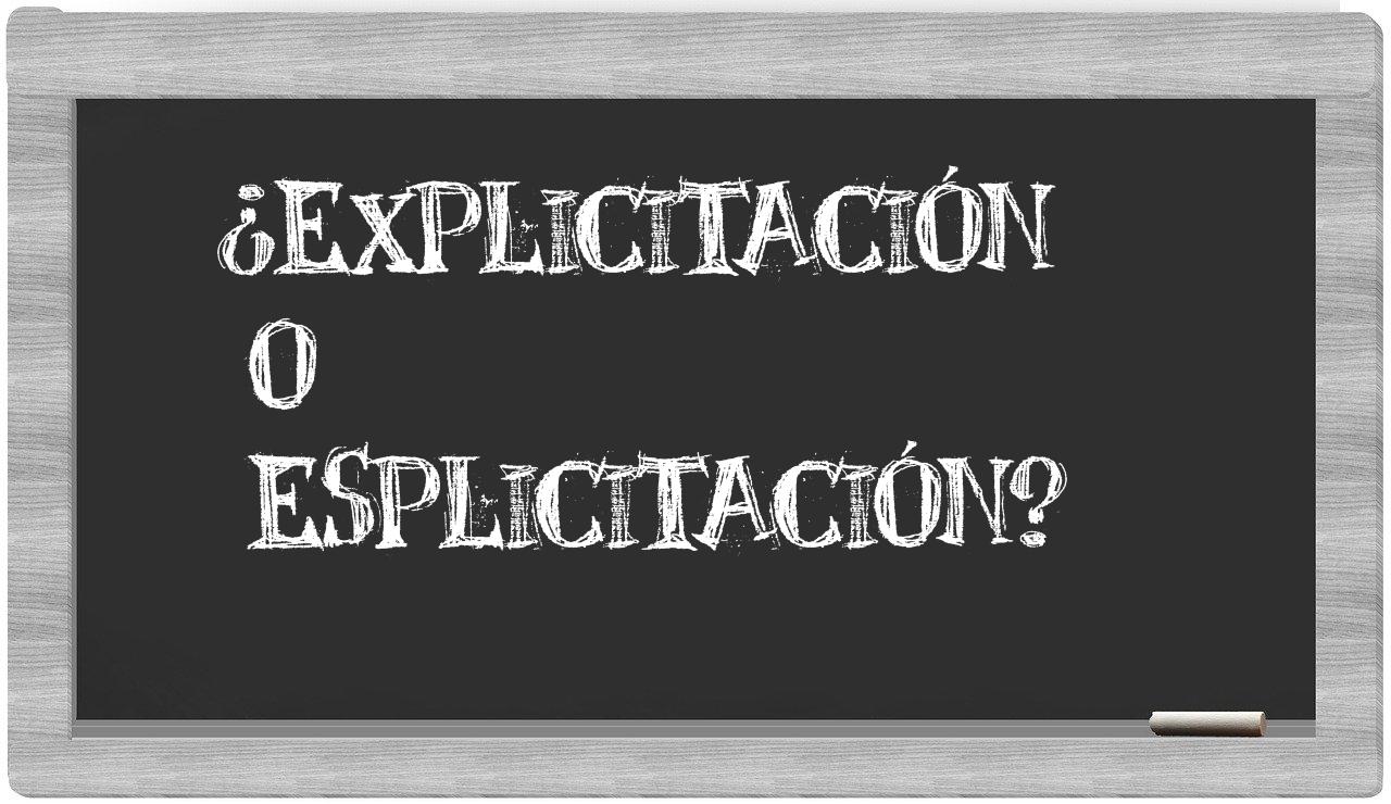 Cuando se presenta la disyuntiva entre explicitación y esplicitación, es esencial que no vaciles, pues únicamente explicitación es la opción que se encuentra debidamente autorizada. La palabra esplicitación, por el contrario, no figura en el Diccionario de la Real Academia Española.