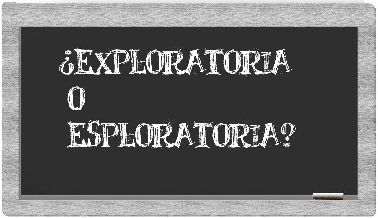 Cuando se trata de la comparación entre exploratoria y esploratoria, debes estar completamente seguro, puesto que únicamente exploratoria se encuentra adecuadamente expresada. Por otro lado, esploratoria no forma parte del léxico reconocido por la Real Academia Española.