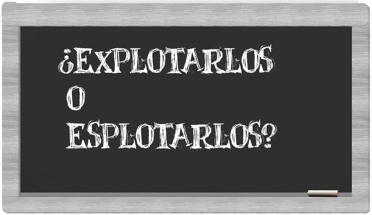 Cuando se trata de distinguir entre explotarlos y esplotarlos, es fundamental que no tengas ninguna incertidumbre, porque solo explotarlos es la forma adecuada. Por otro lado, esplotarlos carece de reconocimiento en el Diccionario de la Real Academia Española.