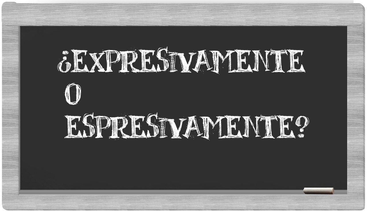 Cuando se trata de elegir entre expresivamente y espresivamente, no deberías vacilar en tu decisión, puesto que únicamente expresivamente es la forma correcta de la palabra; por otro lado, espresivamente no se encuentra registrada en el Diccionario de la Real Academia Española.