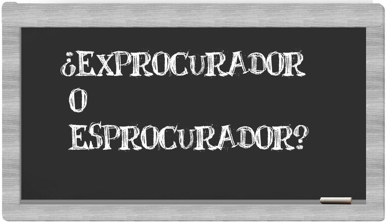 Cuando se trata de distinguir entre exprocurador y esprocurador, no cabe la menor duda; solo exprocurador es la opción adecuada, pues esprocurador no se encuentra registrado en el Diccionario de la Real Academia Española.