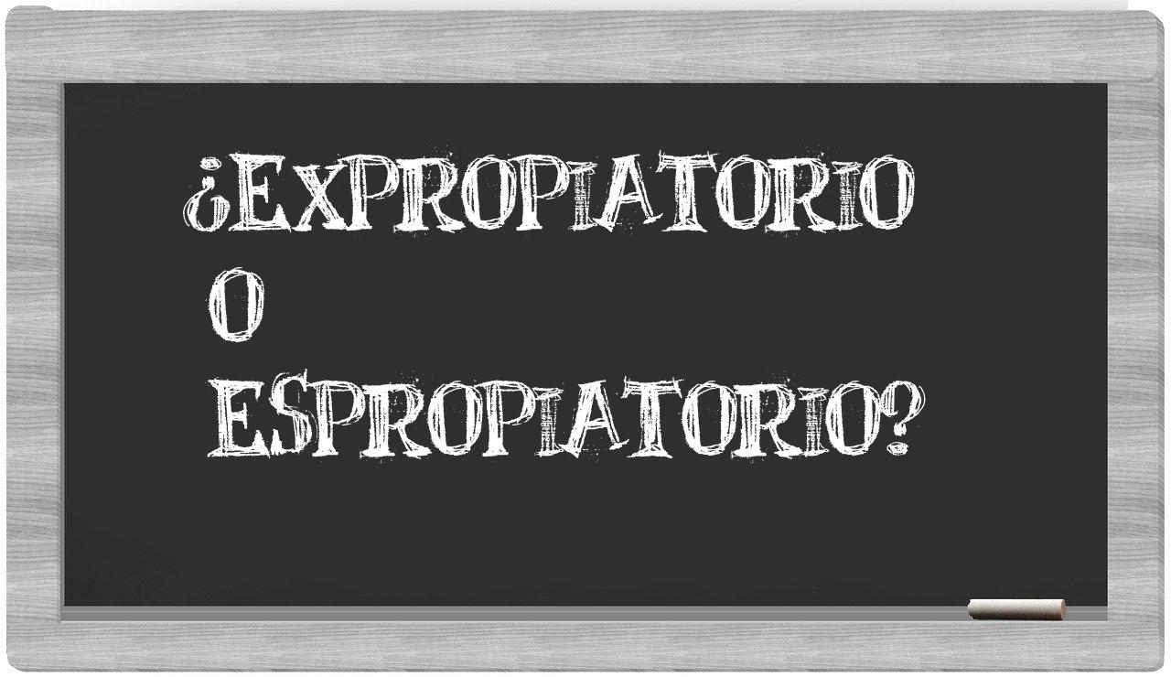Cuando se trata de la elección entre expropiatorio y espropiatorio, no hay lugar para la incertidumbre, puesto que únicamente expropiatorio se presenta como la forma adecuada; espropiatorio ni siquiera figura en el diccionario de la Real Academia Española.