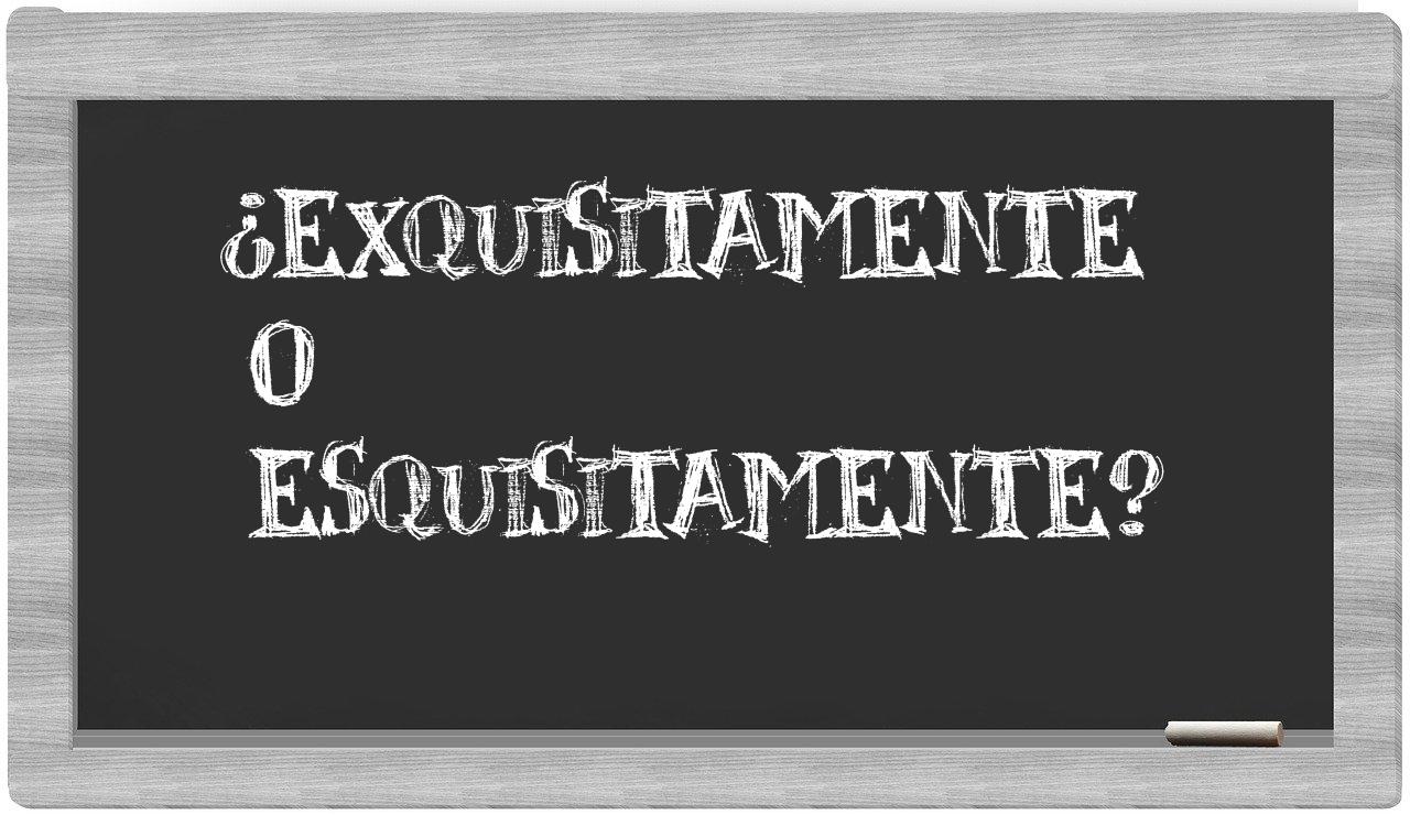 En la particular situación que involucra los términos exquisitamente y esquisitamente, no deberías titubear en ningún momento, dado que únicamente exquisitamente se encuentra correctamente redactada. Por otro lado, esquisitamente no se halla en el Diccionario de la Real Academia Española.