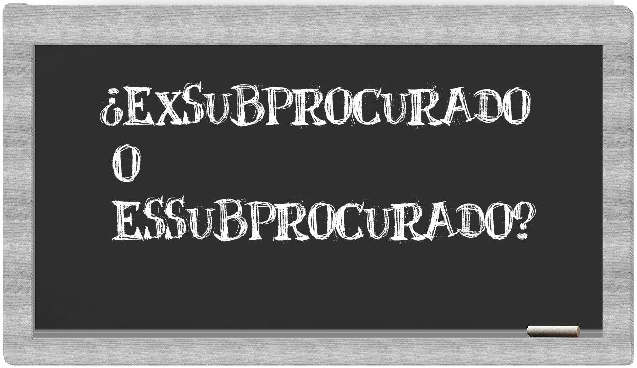 Cuando se presenta la disyuntiva entre exsubprocurado y essubprocurado, es fundamental que no vaciles, puesto que únicamente exsubprocurado está debidamente registrada como correcta. Por otro lado, essubprocurado no figura en el Diccionario de la Real Academia Española.