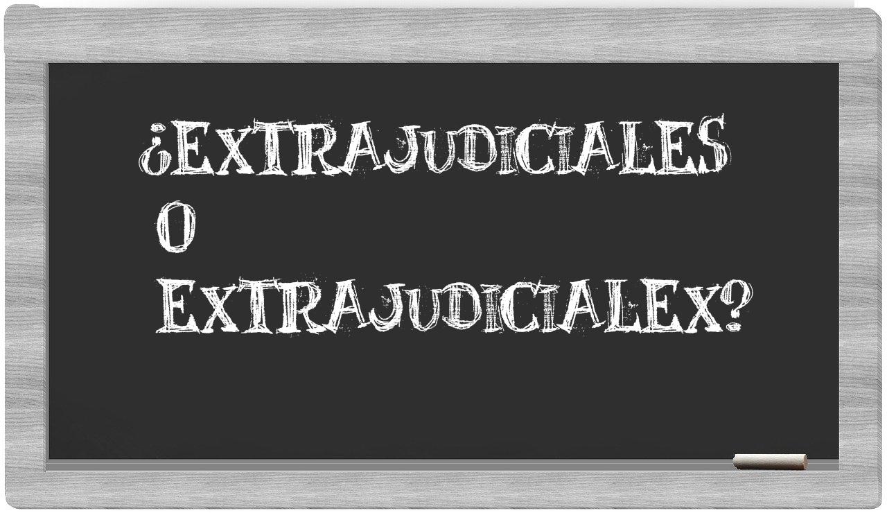 En la particular situación que involucra a extrajudiciales y extrajudicialex, no deberías vacilar en tu elección, puesto que únicamente extrajudiciales está correctamente formulada. Por su parte, extrajudicialex no está registrada en el prestigioso Diccionario de la Real Academia Española.