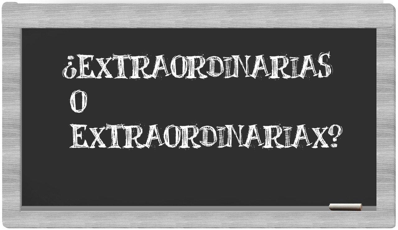 Cuando se trata de la comparación entre los términos extraordinarias y extraordinariax, la elección es evidente, pues únicamente extraordinarias pertenece a la correcta forma escrita. Por otro lado, extraordinariax no se encuentra registrado en el Diccionario de la Real Academia Española.