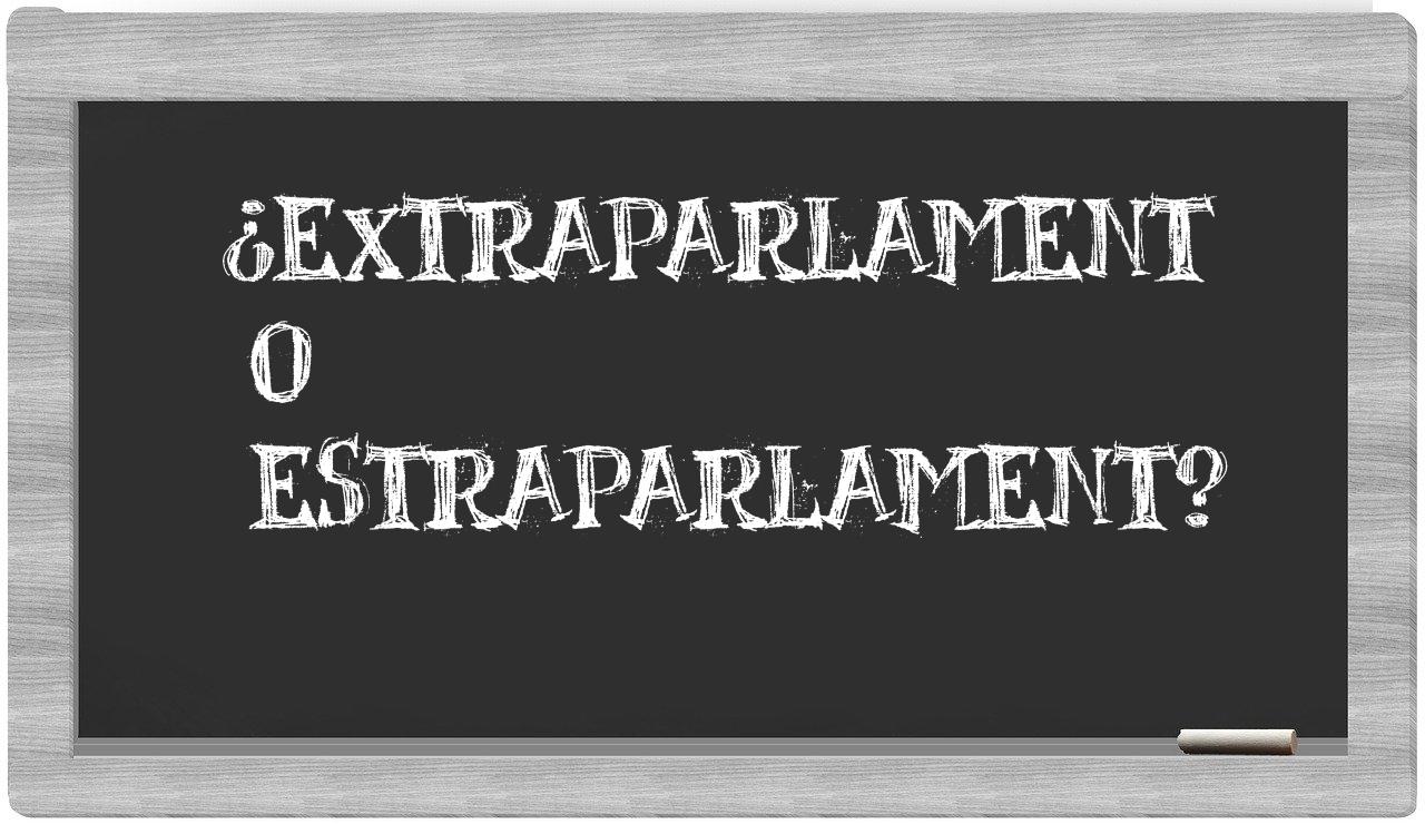 En la particular relación entre los términos extraparlament y estraparlament, la elección debe ser evidente, porque únicamente extraparlament se encuentra debidamente registrada en el léxico oficial. Por otro lado, estraparlament no forma parte del repertorio de la Real Academia de la Lengua.