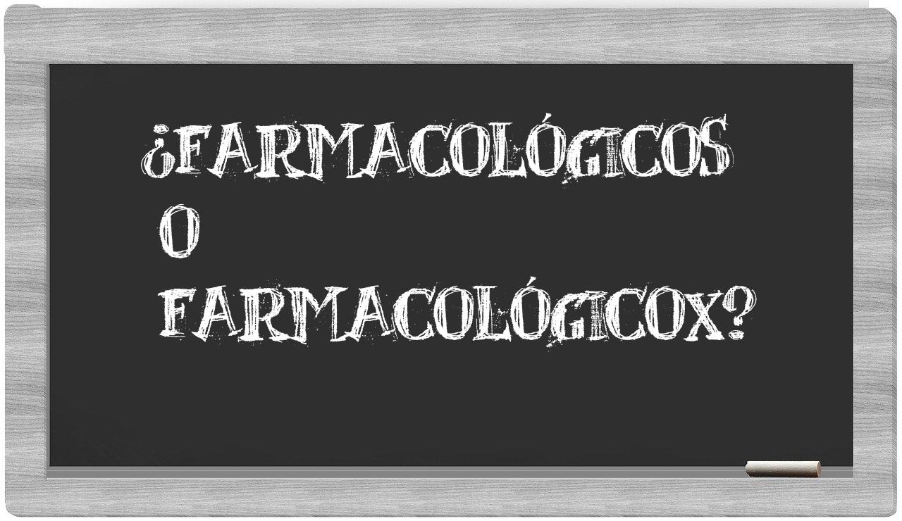 En la situación particular que involucra los términos farmacológicos y farmacológicox, nunca deberías titubear, pues únicamente farmacológicos es el que está redigido adecuadamente. Por otro lado, farmacológicox no se encuentra registrado en el Diccionario de la Real Academia Española.