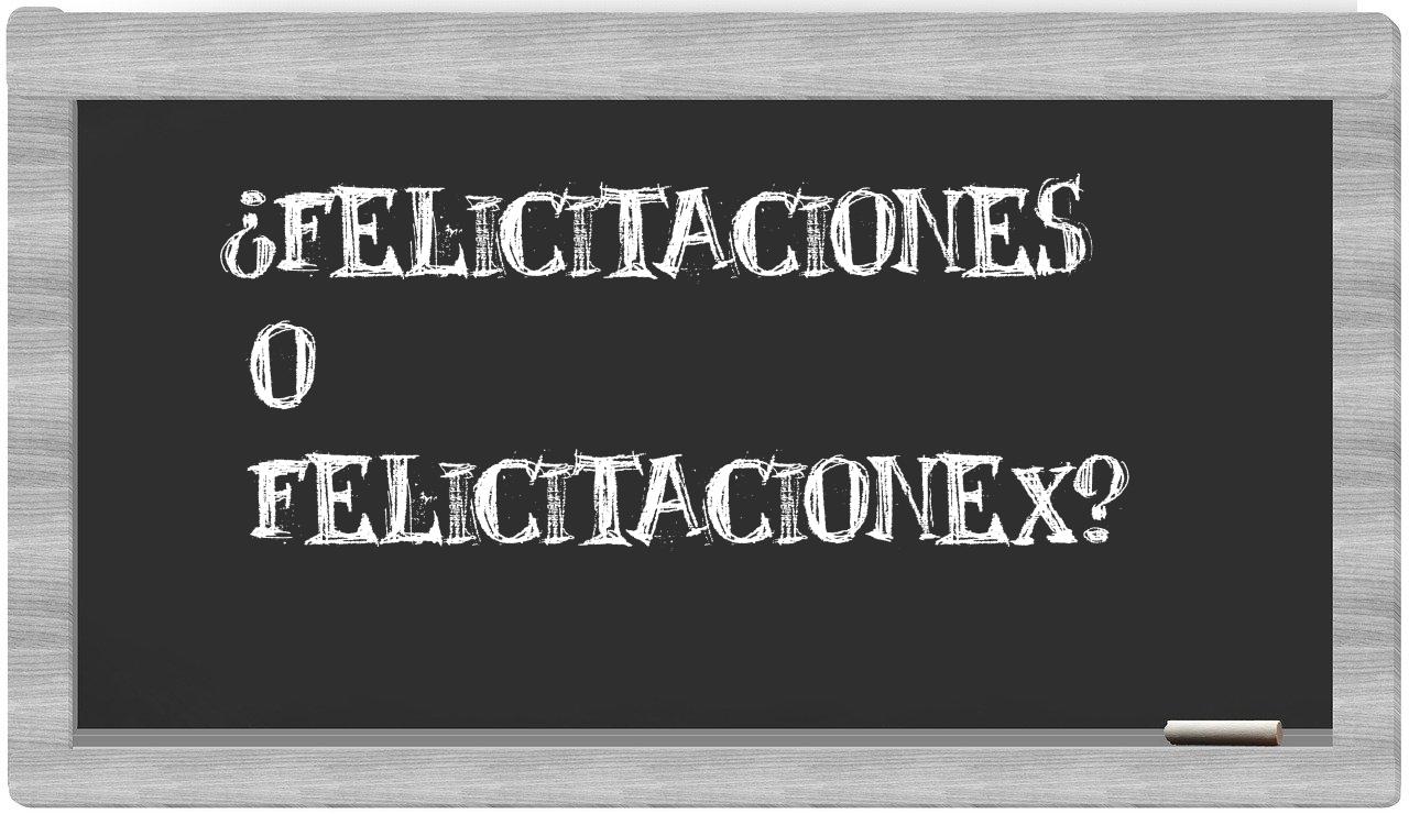 En la particularidad que rodea a las voces felicitaciones y felicitacionex, nunca deberías titubear, porque es únicamente felicitaciones la que se presenta de manera adecuada. La forma felicitacionex no figura en el Diccionario de la Real Academia Española.