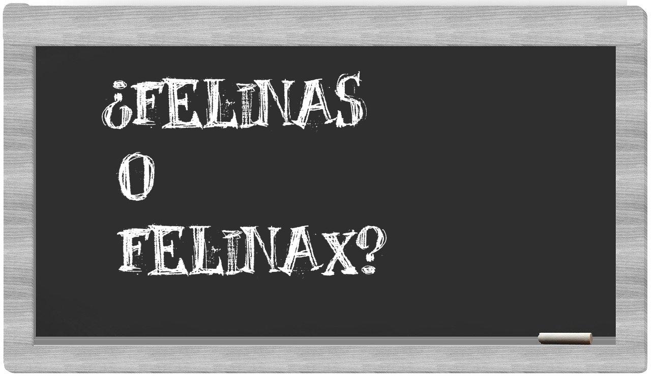 En la circunstancia particular que involucra los términos felinas y felinax, no deberías titubear en absoluto, puesto que solo felinas es la forma válida en el idioma, mientras que felinax no se encuentra registrada en el Diccionario de la Real Academia Española.