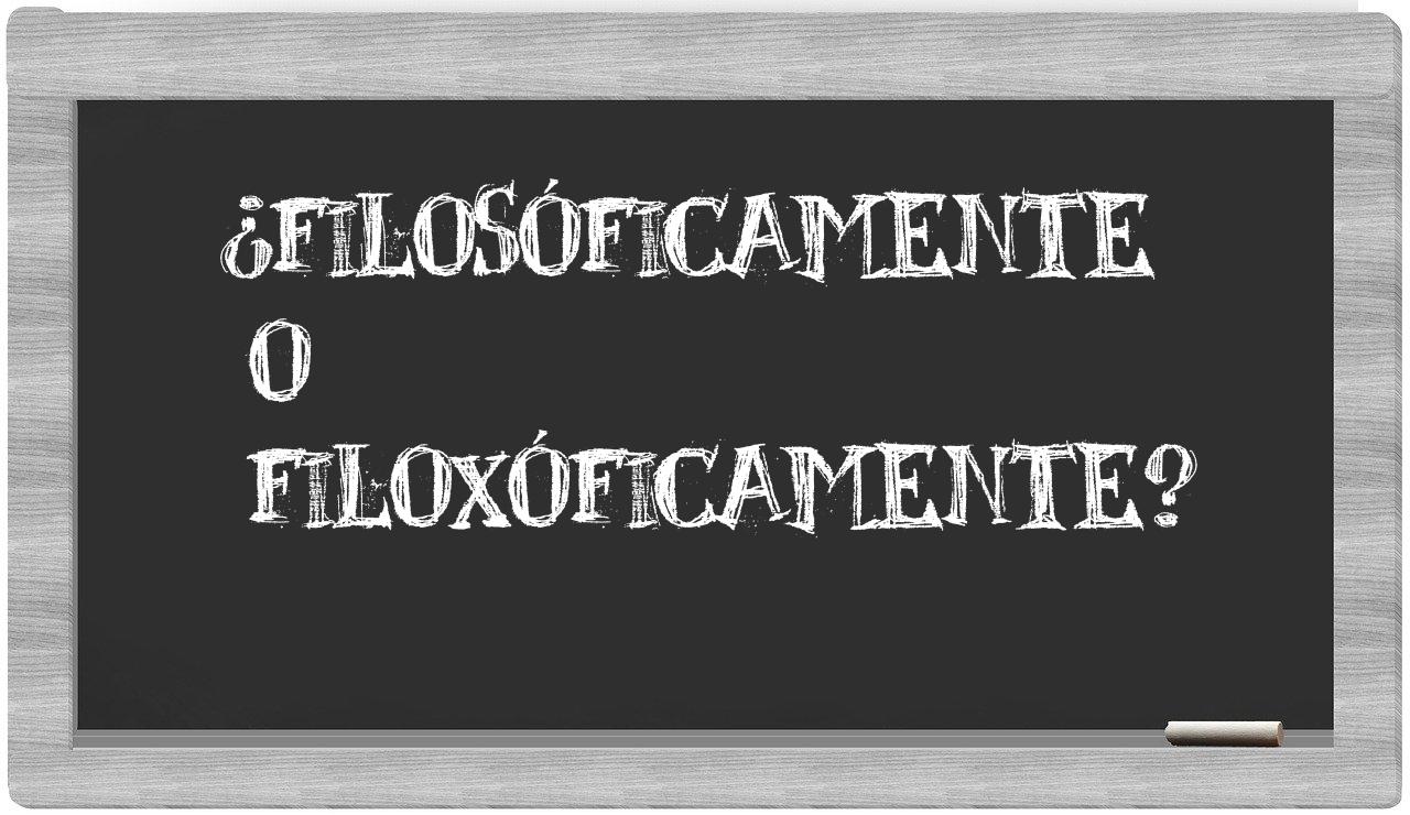 En la particular relación entre los términos filosóficamente y filoxóficamente, la elección debe ser evidente, porque únicamente filosóficamente se encuentra debidamente registrada en el léxico oficial. Por otro lado, filoxóficamente no forma parte del repertorio de la Real Academia de la Lengua.