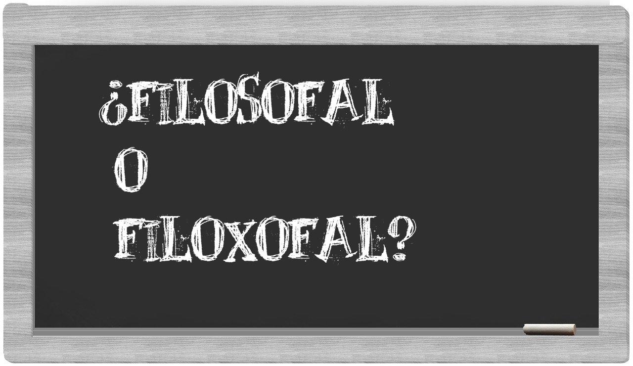 Cuando se trata de elegir entre las expresiones filosofal y filoxofal, nunca deberías titubear, puesto que únicamente filosofal es la que está adecuadamente redactada. Por otro lado, filoxofal no figura en el léxico oficial de la Real Academia Española.