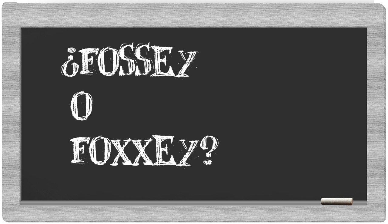 Cuando te encuentres ante las opciones de fossey y foxxey, no vaciles en tu elección, puesto que únicamente fossey es la que se encuentra debidamente aceptada, mientras que foxxey no figura en el Diccionario de la Real Academia Española.