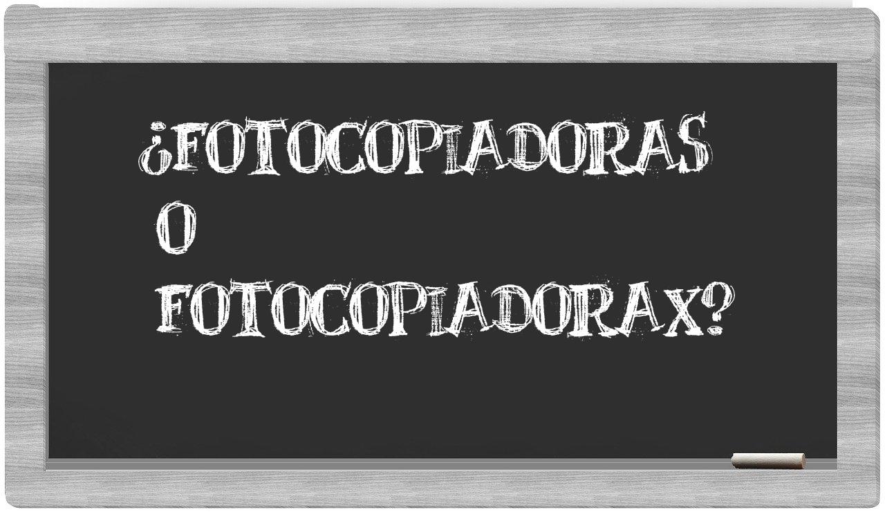 Cuando se trata de la distinción entre los términos fotocopiadoras y fotocopiadorax, nunca deberías titubear, puesto que únicamente fotocopiadoras es la opción adecuada. El término fotocopiadorax no figura en el Diccionario de la Real Academia Española.
