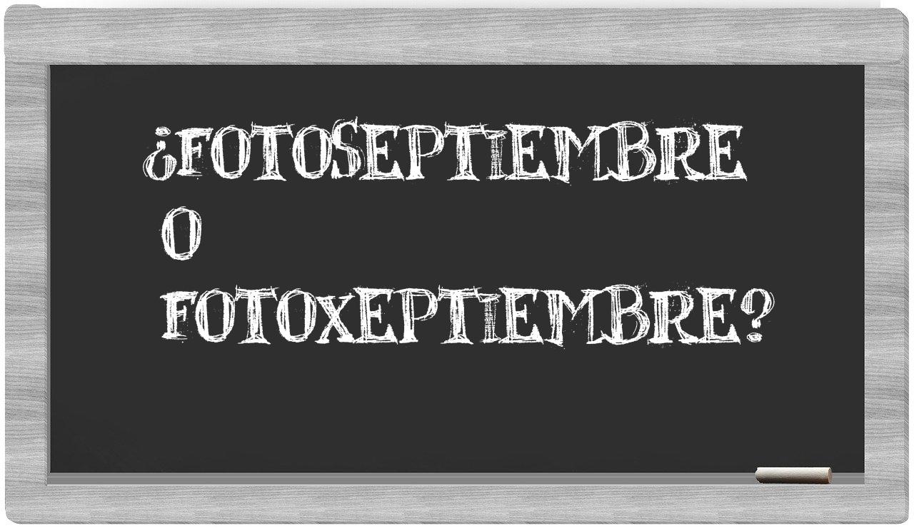 En la situación particular donde se confrontan los términos fotoseptiembre y fotoxeptiembre, es fundamental que no vaciles, pues únicamente fotoseptiembre se encuentra correctamente redactada, mientras que fotoxeptiembre no figura en el repertorio del Diccionario de la Real Academia Española.