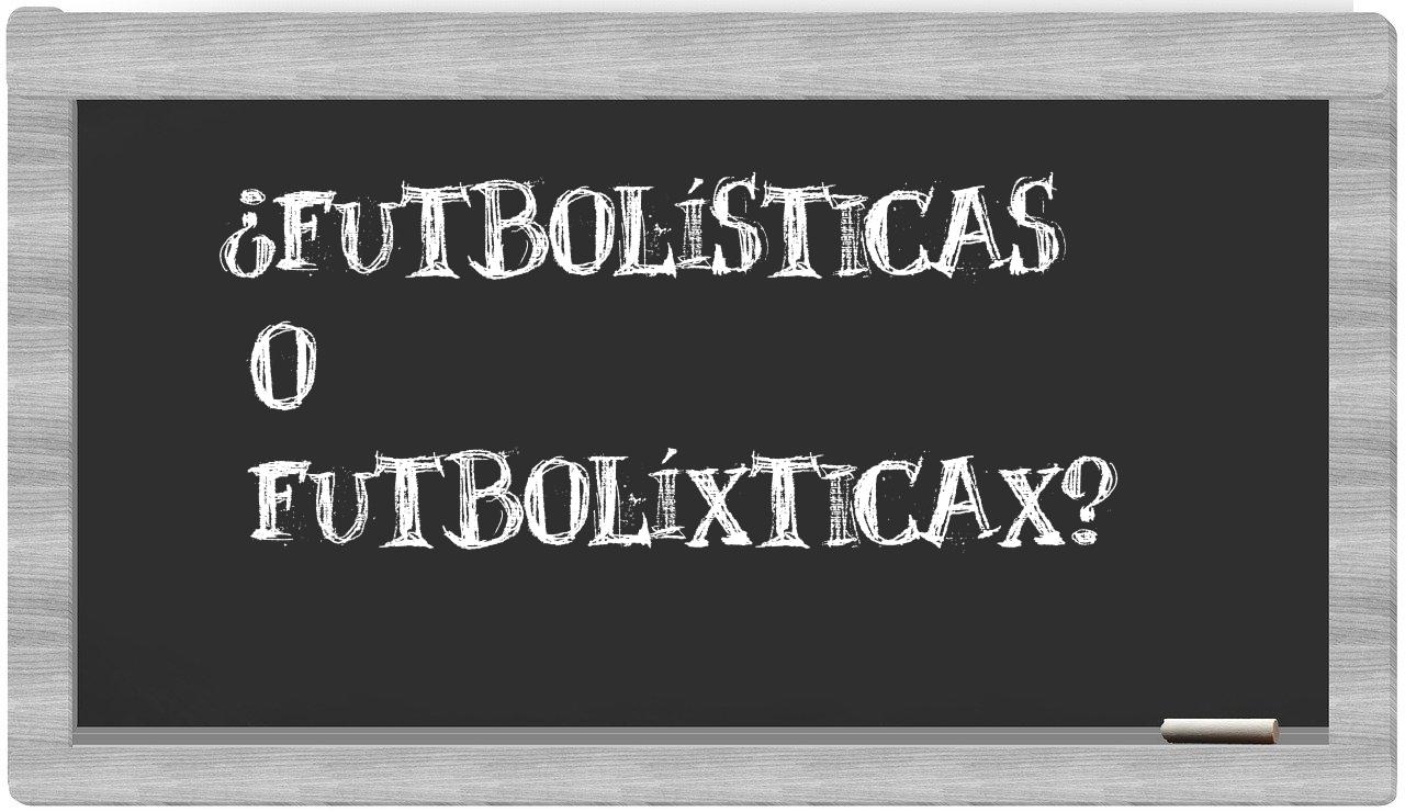 En la situación específica que involucra los términos futbolísticas y futbolíxticax, nunca deberías vacilar, porque solo futbolísticas se encuentra debidamente registrada como correcta. Por otro lado, futbolíxticax no figura en el repertorio de la Real Academia Española.